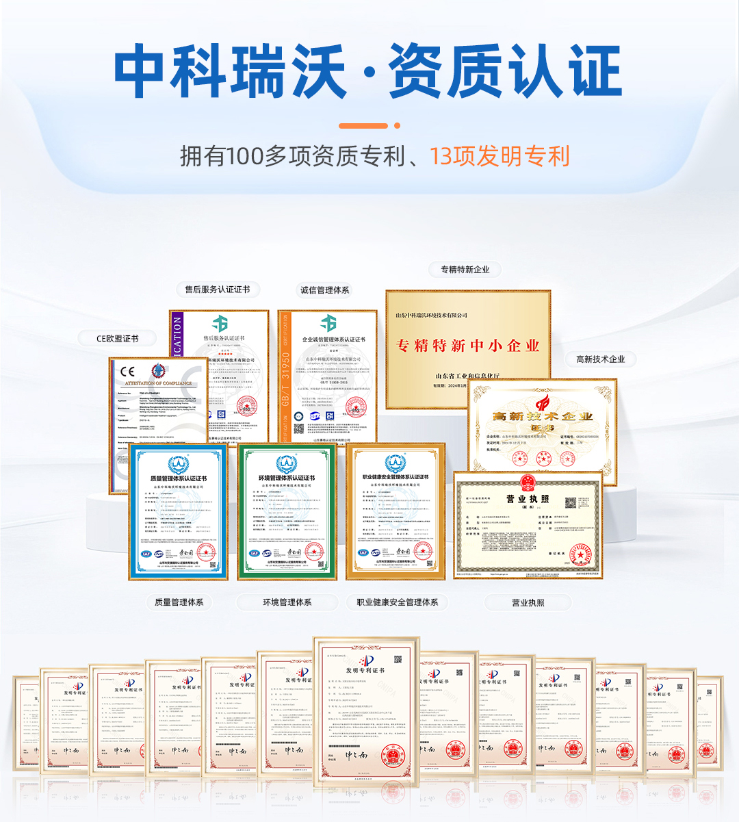 中科瑞沃堅(jiān)持科技創(chuàng)新,科技研發(fā)實(shí)力強(qiáng),有一支具備豐富一線經(jīng)驗(yàn)的研發(fā)技術(shù)團(tuán)隊(duì),近年來(lái)通過(guò)100多項(xiàng)國(guó)家實(shí)用新型及外觀設(shè)計(jì)專利;公司生產(chǎn)基地具備《消毒產(chǎn)品生產(chǎn)企業(yè)衛(wèi)生許可證》,產(chǎn)品均在全國(guó)消毒產(chǎn)品網(wǎng)上備案信息服務(wù)平臺(tái)備案,而且都經(jīng)過(guò)了第三方正規(guī)檢驗(yàn)機(jī)構(gòu)的檢測(cè)及歐盟CE認(rèn)證,符合國(guó)家標(biāo)準(zhǔn)及國(guó)際標(biāo)準(zhǔn),通過(guò)了ISO質(zhì)量體系、環(huán)境管理體系、職業(yè)健康安全體系等多項(xiàng)認(rèn)證。體現(xiàn)了公司在生產(chǎn)、管理、銷售和服務(wù)等各個(gè)環(huán)節(jié)規(guī)范化和體系化。并在2024年通過(guò)了國(guó)家高新技術(shù)企業(yè)認(rèn)證,這標(biāo)志著公司在研發(fā)和創(chuàng)新方面得到國(guó)家相關(guān)部門的肯定與認(rèn)可。