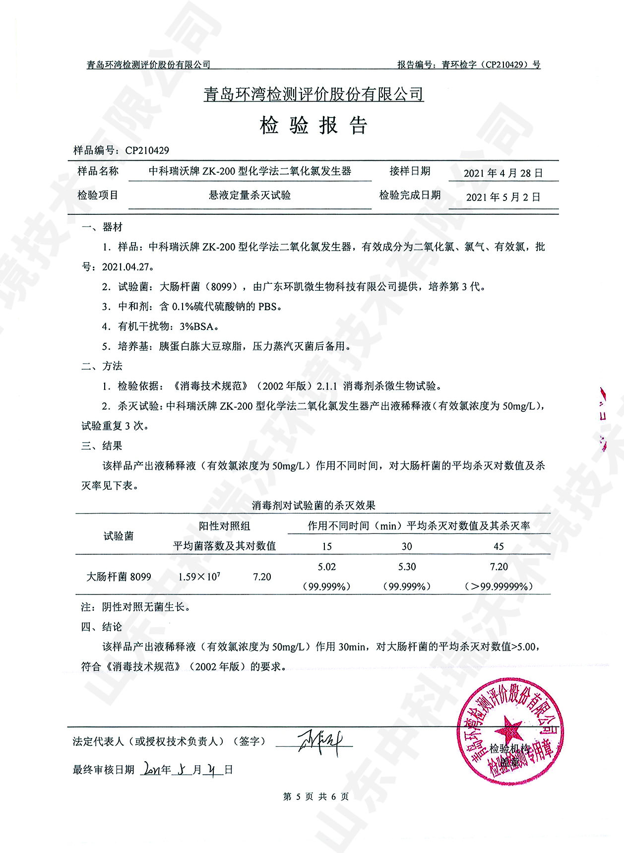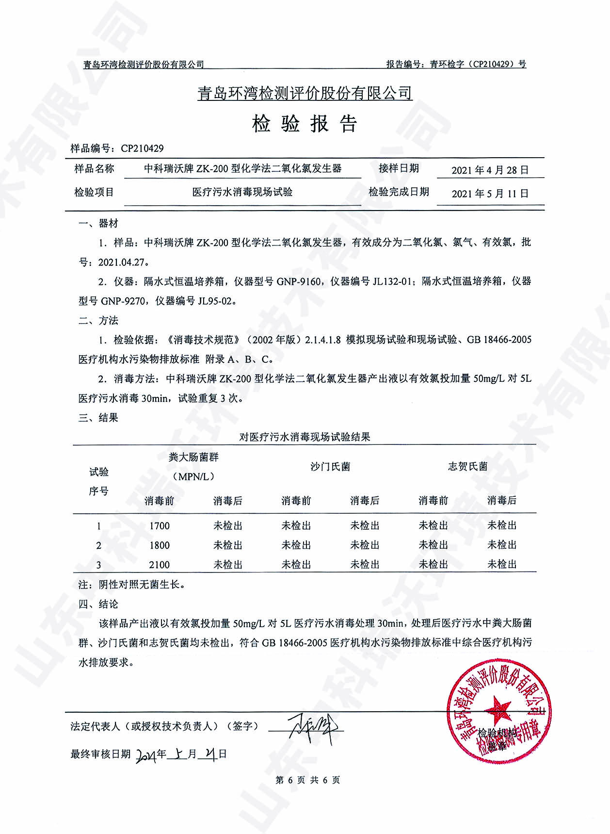 醫(yī)療污水處理設(shè)備檢測報告~二氧化氯消毒
